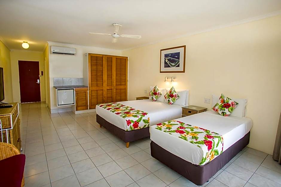 Rooms are close to the water and overlook the beach and lagoon.